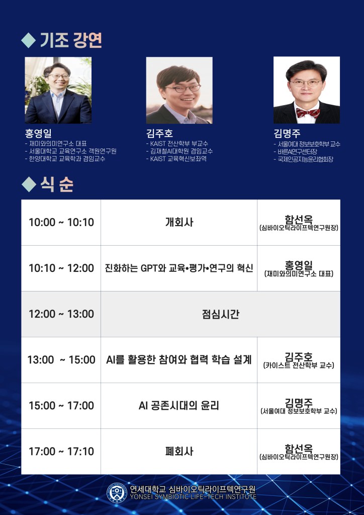 제 1회 심포지엄 Posted byenvironment-behavior-labJune 11, 2024June 11, 2024Posted inUncategorized 2024년 6월 7일 심바이오틱라이프텍연구원 심포지엄 개최 ‘AI, 생활과학 학문과 산업의 혁신’ Related